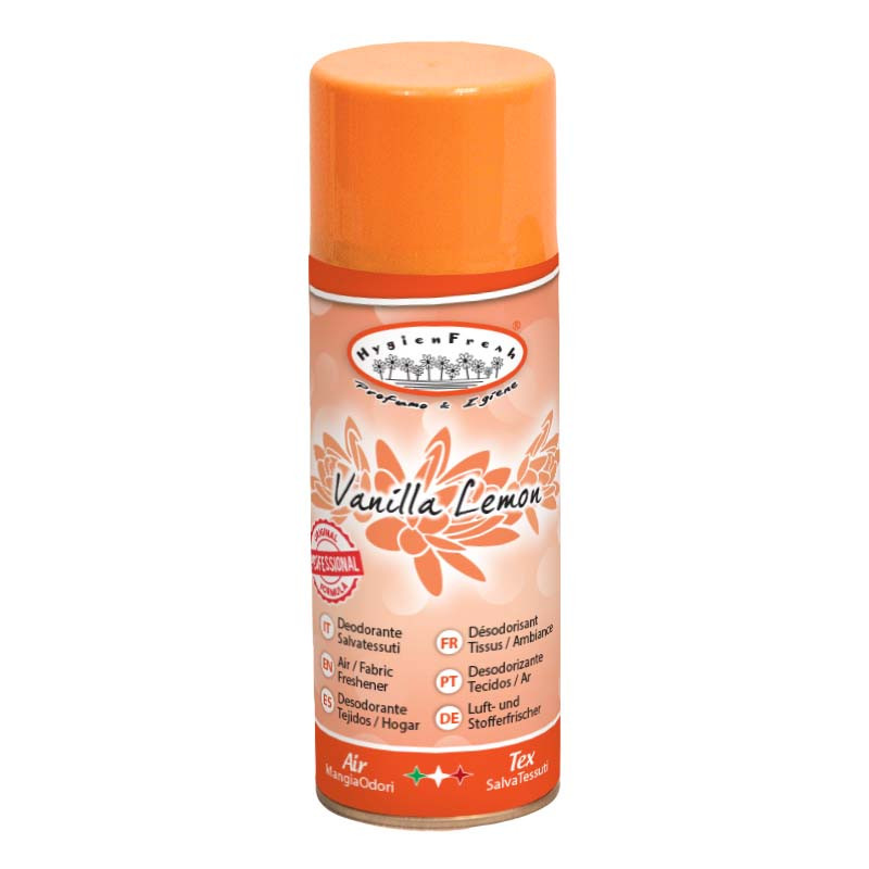 Spray desodorizante com fórmula especial que elimina odores e fragrância de Baunilha e Limão. Pode ser usado em tecidos e no ar, com perfume intenso e duradouro.