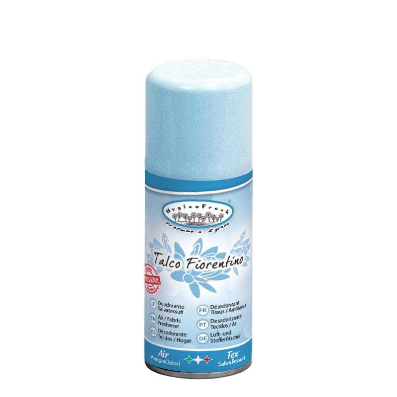 Spray desodorizante com fórmula especial que elimina odores e fragrância Talco de Florença. Pode ser usado em tecidos e no ar, com perfume intenso e duradouro.