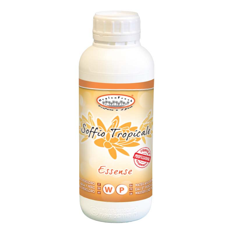 Essência perfumada com elevada concentração de fragrância a frutos tropicais, indicada para lavagem com água e a seco (percloroetileno).