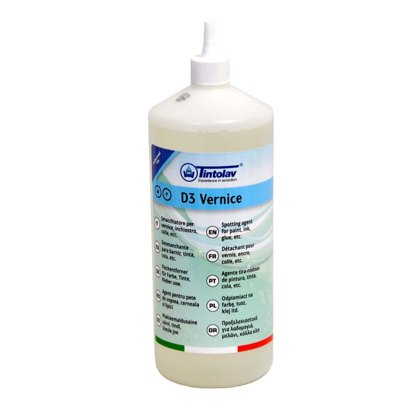 Removedor específico para lavagem a seco e em água. Indicado para nódoas de verniz, cola, tinta, alcatrão, batom e esferográfica. Recomendado para uso em pré-tratamento.