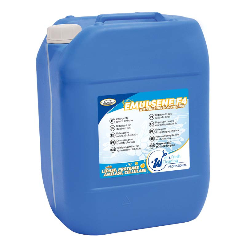 HygienFresh® Emulsene F4 é indicado para a lavagem de roupa branca e de cor, e pode ser utilizado em todos os tipos de tecidos resistentes (algodão, ganga, fibras sintéticas, etc.).